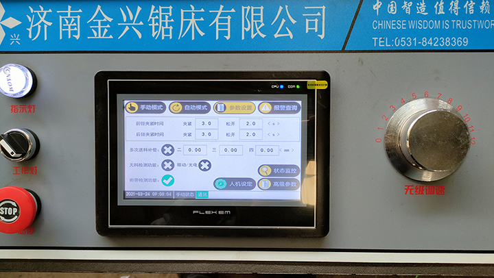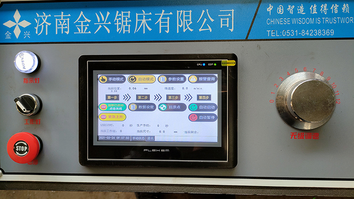 8.鋸床按有暫停功能,比如你(nǐ)下料時鋸到(dào)一半時想停一下,可以按暫停鍵,想(xiǎng)啟動時再按一下暫停鍵,鋸床還會(huì)接著上一(yī)組數(shù)據接著工(gōng)作(zuò),不會回零(líng)重新鋸切.